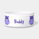 Este adorable tazón personalizado para mascotas presenta una cara de hipopótamo de dibujos animados morada, linda y amigable con ojos grandes y brillantes. ¡Perfecto para pequeños amantes de los animales!