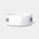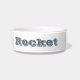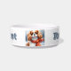 Un tazón mascota con una hermosa acuarela Cavalier King Charles vistiendo una bufanda roja en un paisaje frío. ¡Personalizable.