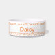 Colas de camarón hervidas de acuarela en un patrón ditsy sobre fondo blanco. ¡Personalice este tazón con el nombre de su mascota!