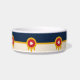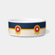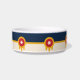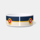 Tazón de mascotas con un diseño con la bandera de Tulsa, Oklahoma. Bandera beige y azul marino con un escudo Osage dorado que contiene un círculo rojo y una estrella beige de seis puntas