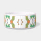 Dale a tu mascota una experiencia de comida placentera y elegante con este tazón de mascota personalizado que presenta un patrón geométrico en verde salvia, azul turquesa y naranja sobre un fondo blanco crujiente. Diseñado para combinar perfectamente con la decoración moderna del hogar, este tazón es tan funcional como elegante. ¡Agrega el nombre de tu mascota para hacerlo único!