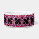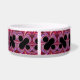 Este tazón mascota presenta un hermoso arte fractal con un signo de porcentaje negro en un fondo abstracto rojo, rosa y morado.
