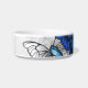 Composición vertical de mariposas morfo realistas, azules y blancas sobre fondo texturado gris. Mariposa morfo azul.