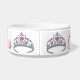 El tazón para perros cuenta con una ilustración original de un marcador de una hermosa tiara de princesa con piedras de imitación y joyas rosadas. Personalizado para cualquier perro o gato llamado PRINCESA.