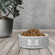 Mimá a tu preciada mascota con este tazón personalizado con estampado de cuadro de búfalo gris y blanco. ¡Personalízalo con el nombre de tu perro en el hueso!