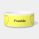Cuatro corazones de armazón de alambre, en rojo, 2 a cada lado del nombre personalizado del mascota. Seleccione su propio color de fondo.
