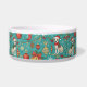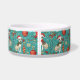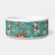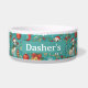 This bowl is a teal-tinted tribute to tail-wagging holiday chaos—wrapped gifts, candy canes, and pups in scarves swirl around like your pet’s dreams of stealing Christmas dinner, all centered on their name like they’re the CEO of festive feasting.