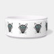 Este impresionante tazón mascota presenta un personalizado al estilo kawaii de un tierno lobo gris de Halloween con orejas puntiagudas, ojos azules brillantes y nariz negra rodeada de whiskys. Este lobo lindo es perfecto para Halloween o para los amantes de los animales.
