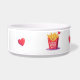A cute and colorful cartoon illustration of a red French fries carton with a happy kawaii smiling face. The design features a floating red heart and the romantic funny pun quote "I only have FRIES for you". The image has a white sticker border, making it perfect for Valentine's Day greeting cards, fast food lovers, and humorous romantic gifts. Isolated design.