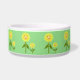 Este impresionante tazón mascota presenta una imagen de diseño gráfico de un girasol amarillo bonito con un tallo verde y hojas y girasoles amarillos brillantes. La Madre Girasol tiene ojos amables y una sonrisa en su cara. Hay un girasol más pequeño junto a la flor madre y su hoja está tocando la hoja del girasol infantil ofreciendo amor y apoyo. Un hermoso diseño para cualquier madre en Día de la Madre.