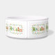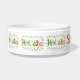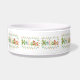Tazón divertido y caprichoso para perros en días festivos. Regalo adorable para amigos peludos esta temporada. Diseño colorido con acebo, muñeco de nieve, bastón de caramelo, vela, piña, cardenal y rama de piel rodeada de luces de Navidad. Solo agrega el nombre del perro.