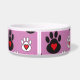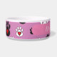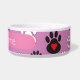 ¡Tu amada mascota comerá con estilo con este colorido tazón rosado con garras negras y blancas con corazones!