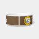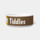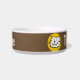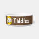 Añade tu nombre de mascota a este divertido bol que cuenta con un ilustracion de estilo personalizado de un gato sonriendo. Fondo marrón.