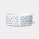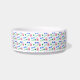Are you looking for a cute and fun bowl for your dog? This pet bowl features a pattern of pink dog paw prints, blue dog bones, green hearts and the word woof.