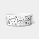 Un lindo patrón de garabatos hechos a mano de gatos graciosos, y textos como "gatos" y "miau", en pequeños y tontos dibujos negros sobre un fondo blanco. El gracioso patrón de gatito en este tazón de comida es divertido para los amantes de los gatos y conveniente para sus gatos. Y hay espacio para el nombre del gato.