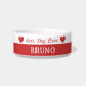 Haga especial la comida para su amigo con nuestro lindo plato de cena de perro rojo y blanco, diseñado para lo mejor. Perro. Nunca. Este elegante tazón de perro presenta tipografía audaz, dos corazones adorables y una opción de personalizable para añadir el nombre de su perro. El esquema de colores clásico complementa cualquier decoración de casa, y es una gran idea de regalo para los padres nuevos mascotas o para celebrar el día especial de sus crías. Muestra tu amor y aprecio por tu familiar de cuatro patas con este plato de personalizable tan elegante como práctico. ¡Perfecto para el perro que realmente es el mejor! H(H)