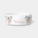 Este tazón mascota personalizado para un perro o gato tiene una elegante estampada floral de flores de melocotón en un fondo blanco.