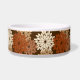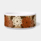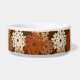 Tazón para mascotas con una reinterpretación moderna de la tradicional estampa floral de kimono japonesa: flores estilizadas en tonos de beige, marrón rojizo y beige sobre un fondo de marrón chocolate oscuro