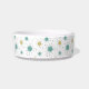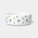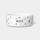Este tazón para mascotas fabuloso de mediados de siglo moderno cuenta con explosiones de estrella franciscanas en azul y amarillo y el nombre de tu mascota en una fuente negra informal. ¡Añade un elemento divertido a la hora de comer de tu mascota!