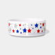 Un tazón mascota decorado con estrellas rojas, blancas y azules.