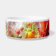 Una vibrante explosión de frutas frescas, incluyendo manzanas, fresas, plátanos y bayas, arregladas artísticamente en un dinámico patrón giratorio. Brillantes salpicaduras de colores (rojos, amarillos, verdes y azules) se entrelazan con los frutos, creando una composición dinámica y animada. El fondo es oscuro para realzar la vitalidad de los colores y el frescor de las frutas, que evocan una sensación de vitalidad y abundancia.