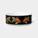 Fotografía de lujosos peces de colores aislados en negro impreso alrededor del bol.