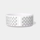 El original ilustracion personalizado de Destei de un perro de raza Chihuahua, suave y de pelaje. El fondo tiene un patrón de huellas de perros grises y también hay un área de texto personalizable para el nombre del perro.