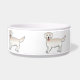 El original ilustracion personalizado de Destei de un lindo perro de raza Golden Retriever color crema inglesa. El perro tiene una expresión de cara feliz con ojos amables y la lengua rosa del perro está mostrando.