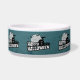 Feliz ilustracion de diseño de texto de Halloween con decoración de cementerios y murciélagos en luna llena sobre fondo azul grunge