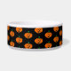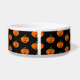 Halloween no asustado Jack-o'-Lantern. Cuestas calabazas naranjas para una feliz Halloween. Al decorar su casa para Halloween, no olvide incluir a su mascota en este plato de agua o comida súper adorable de Halloween.