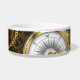 Fondo de madera marrón con mar, cresta mecánica, volante antiguo, ancla dorada y varios engranajes de oro y latón. Estilo Steampunk.