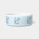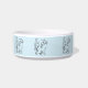 Un divertido y colorido tazón de gato con un adorable y bonito dibujo de una línea de gatitos con un fondo azul claro.