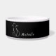 Gato blanco minimalista en un tazón mascota de gato de fondo blanco. Personalice este elegante Cat Pet Bowl con su nombre.