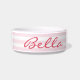 Crea tu propio guión personalizado, personalizado, elegante y elegante de tipografía rosa oscuro, retro fresco elegante estilo de moda de rayas rosa claro fondo de fondo, divertido, monogramado, cerámica, gato mascota gatito gatito perro perrito perrito podrido cuenco de comida. Simplemente introduzca su nombre de mascota / su texto, al personalizar. Ideal para cumpleaños, navidades, vacaciones, nuevos años, y más, para mascotas dueños de perros/gatos, amigos y familia.
