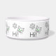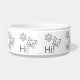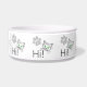 Su texto y dibujos de una cara de gato con ojos verdes y una pata. Saludos a los gatos. Un plato divertido para mascotas o gatos.