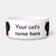 Gato negro con ojos verdes y lengua rosa Cute tazón mascota con espacio para añadir el nombre de tu gato