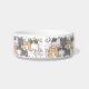 Este encantador tazón para gatos presenta un diseño adorable y caprichoso de varios gatos de dibujos animados en diferentes colores y patrones, incluyendo gris, negro, blanco y naranja. Cada gato tiene una expresión única, y algunos incluso llevan gafas, lo que añade al atractivo estético divertido y juguetón. El fondo es blanco, lo que hace que los gatos coloridos resalten hermosamente. Se puede personalizar con el nombre de su gato haciendo clic en "Personalizar esta plantilla".