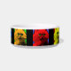 Este cuenco caprichoso del mascota del gato es ideal para el amante del arte pop y del gato en su vida. Cuatro retratos de pelo largo coloridos del gato del arte pop y cuatro retratos de pelo corto coloridos del arte pop rodean el exterior de este cuenco de la diversión. ¡También disponible para las razas del perro!