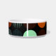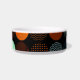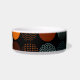 El nombre personalizado del círculo geométrico moderno abstracto geométrico presenta un patrón abstracto de círculos con varios patrones en naranja, menta y araña sobre un fondo negro con el nombre de su mascota personalizado en el centro. Diseñado por Evco Studio www.zazzle.com/store/evcostudio