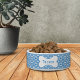 Comedero Gingham Azul Personalizado con Huellas de Pata y H