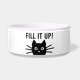 Cara de gatito negro de aspecto fino con las palabras "¡Llénalo!" El texto se puede personalizar. Un divertido tazón de comida para gatos para tu delicado amigo felino. Este gato fresco está disponible en más productos que hacen grandes regalos. Visite el Doodle World de Jenn para más divertidos productos de mascota.