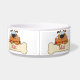 Agrega el nombre de tu perro a este divertido tazón mascota personalizado de perro caricaturista. El diseño del bulldog con un hueso en su boca en 4 lados diferentes del intestino, todo personalizado con el nombre de su perro.