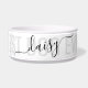 Cuenco de perro blanco y negro con "BEST DOG EVER" gris y el nombre de su perro personalizado en una moda y elegante escritura caligráfica de texto superpuesto. Introduzca cualquier texto personalizado que desee para el fondo y la capa superior de texto para crear su propia comida mascota cerámica personalizada y mínima y divertida o tazón de agua. Ver nuestra colección de tazones de coordinación y conseguir un set!