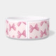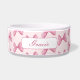 Girly Pink Bow Dog Bowl agrega fácilmente el nombre de tu mascota en letra cursiva. Patrón de coqueta rosa de moda.