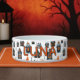 Turn your pup’s mealtime into a spooky celebration with this Halloween-themed dog bowl. Featuring a charming pattern of miniature haunted houses in eerie shades of black, grey, and orange, this ceramic bowl is personalized with your dog’s name for a festive and stylish touch. Made from durable ceramic, this food or water dish is dishwasher safe and printed in the USA.