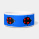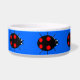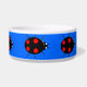 Este impresionante tazón mascota presenta un colibrí negro con cuatro manchas rojas en forma irregular en su espalda, seis patas y dos manchas blancas que parecen ojos en la parte delantera de su cabeza. Originalmente una especie asiática que ahora vive y se cría en Europa y Estados Unidos. Se ha colocado en un fondo azul, pero también se ve bien en otros tonos. Puede cambiar el color de fondo y otros aspectos del diseño haciendo clic en el botón "personalizar".
