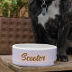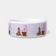 Agrega el nombre de tu cachorro a este adorable tazón de perro personalizable que presenta mi ilustración original de un dulce cachorro marrón que mira amorosamente una planta de flores de corazón en flor. Corazones rosados y magenta crecen de una vid caprichosa, simbolizando el amor incondicional, al igual que el vínculo que compartes con tu mejor amigo peludo.