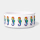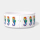 Arco de arcoiris, caballito de mar poligonal sobre fondo blanco. Tatuaje brillante.