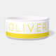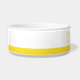 Cuenco mascota personalizado personalizado de rayas amarillas para la comida o el agua de su perro o gato con una fuente moderna y espacio para tipear el nombre de su mascota. Haga clic en 'personalizar más adelante' para cambiar el color de la banda o el tipo de letra.