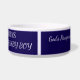 Este diseño de tazón de cerámica para mascotas coloca la foto de tu compañero en el centro, con su nombre y apodo elegantemente mostrados a la derecha. A la izquierda, la frase “Huellas de Dios en mi vida” se combina con una serie de huellas de patas azul claro, equilibrando la composición con simbolismo conmovedor. Un tributo moderno pero tierno, ideal para padres de mascotas que aprecian tanto la fe como la alegría de su amigo peludo.
